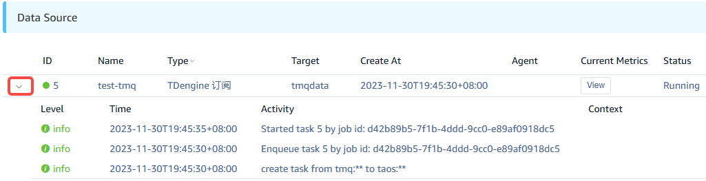After submitting the task, return to the data source page to view the task status. The task will first be added to the execution queue and will start running shortly.