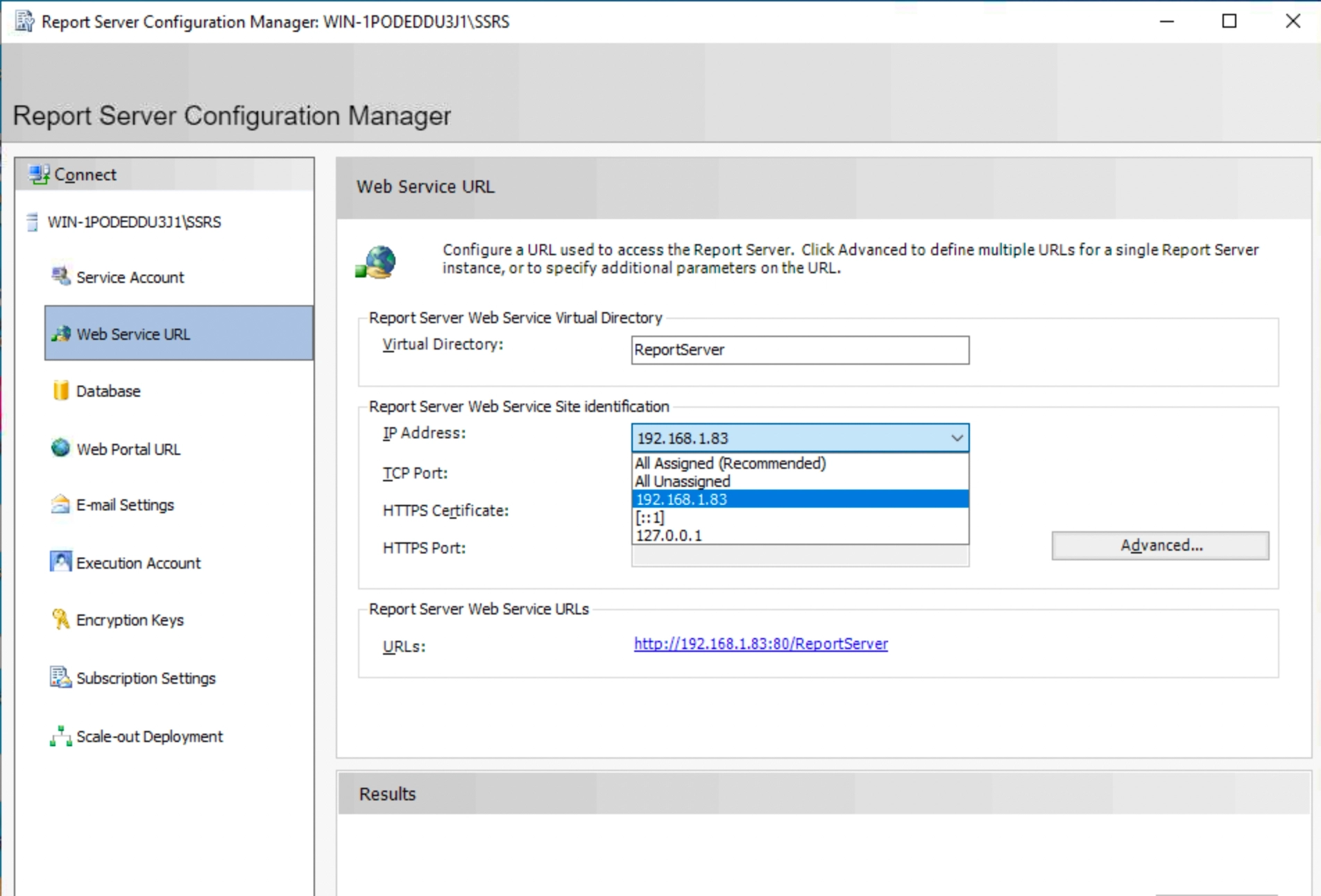 Configure the Microsoft SQL Server 2022 Reporting Service to use an IP address for external services.