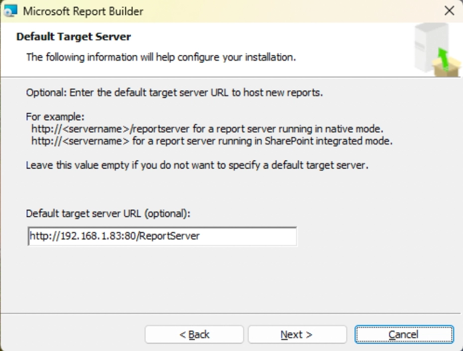 Configure Microsoft Report Builder to report the report server address, you should fill in the "Report Server Web Service URLs" address recorded earlier.