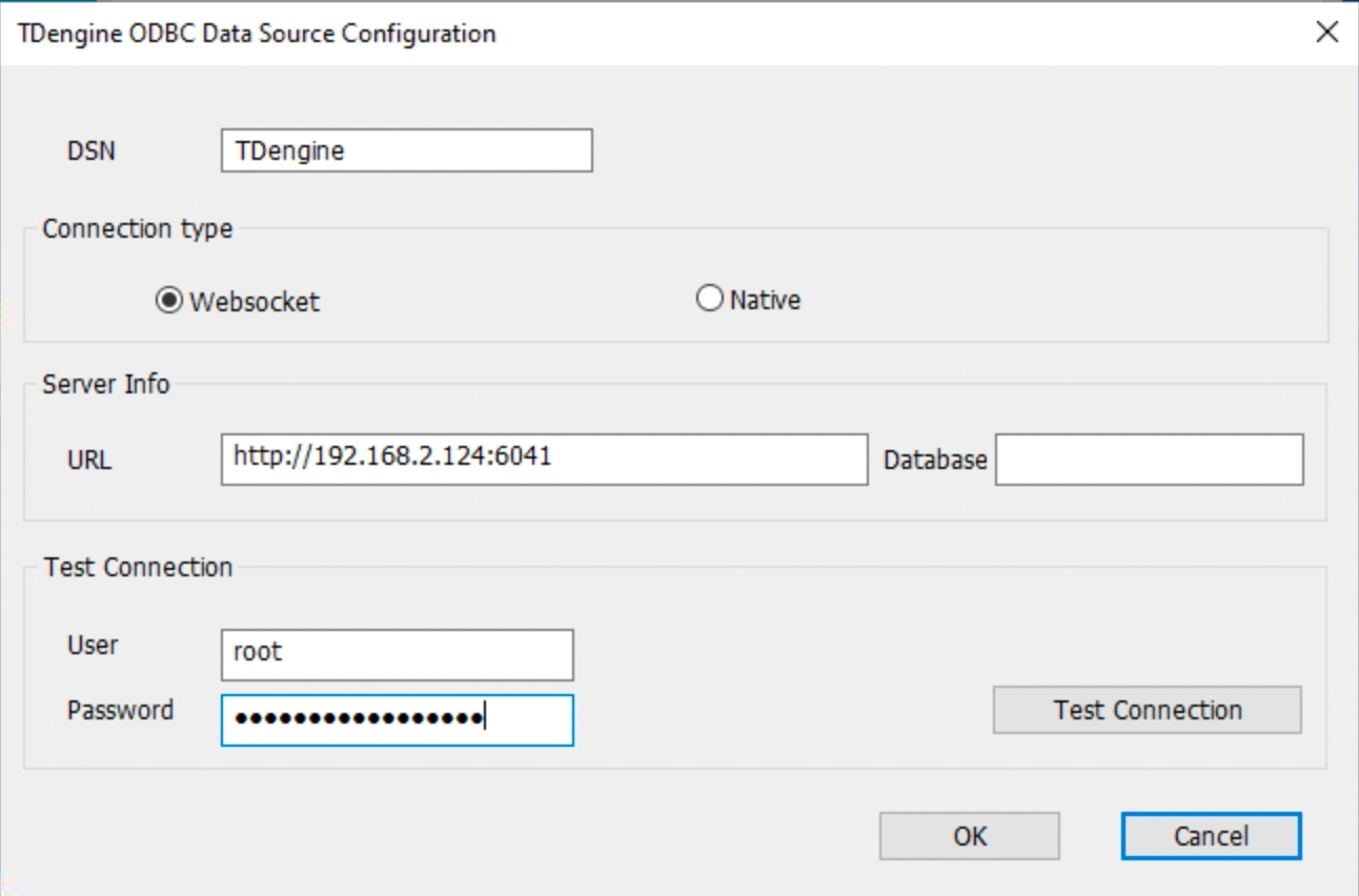 - DSN: fill in "TDengine".