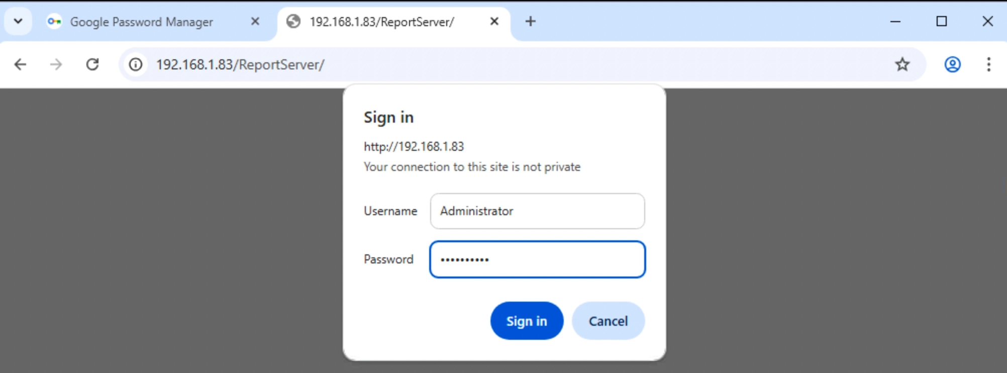When the client accesses the report data for the first time, an authorization window will pop up asking for login, enter the report server operating system login account.After the account is entered successfully, the following page will appear, and you can see the report "meters" saved and uploaded earlier.